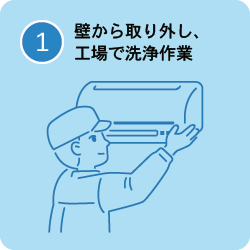 エビテックは、エアコンを壁から取り外し、完全分解洗浄を行います。
